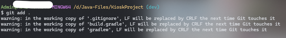 💡 만든 파일은 원래 LF로 되어 있었지만, Git 설정에 따라 CRLF로 바뀌게 된다는 경고입니다.