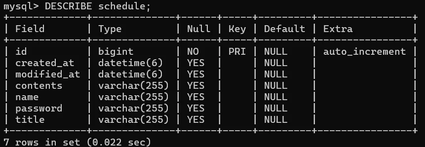 - Schedule Table 생성 후 DB와 코드가 어떻게 연결되는지를 직접 확인